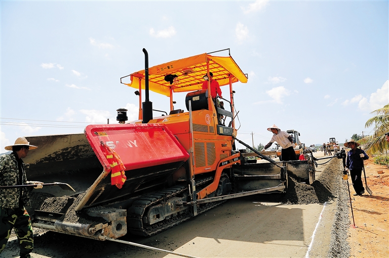 10月26日上午,万宁石梅湾至大花角滨海旅游公路现场,10多辆工程车正在抓紧施工。该项目作为海南旅游公路示范工程,于2012年12月20日开工建设,目前已完成总投资额11.2亿元的78%,预计年底通车。