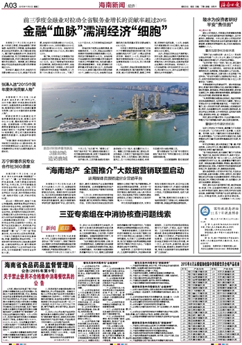 海南日报 海南新闻经济 003 2015-11-031 2015年11月03日 星期二