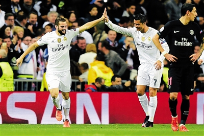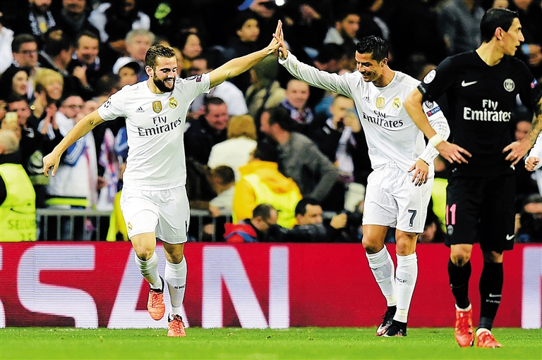 皇马主场迎战“大巴黎”,尽管场面上遭到对手压制,但替补出场的后卫纳乔一次令人意外的射门成就了全场唯一进球。门框也在比赛中站在了皇马一边,两次将“大巴黎”球员的射门拒之门外。