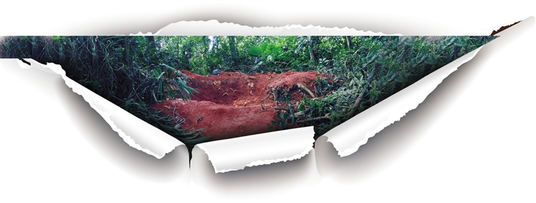 将近一年的时间过去了,沉香树被挖走后遗留下的两个大土坑还没被填上——坑口显眼,红土裸露,中心凹陷,看上去就像两个愈合不了的溃疡疮口。