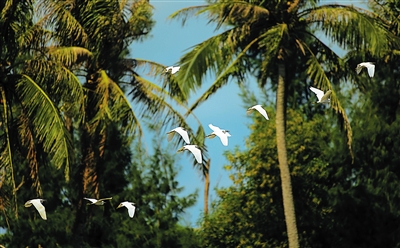 11月7日,海口市美兰区演丰镇东寨港国家级自然保护区陆续迎来候鸟过冬,一群群白鹭在海天间翩跹起舞。据了解,海南东寨港孕育了我国生长最好、面积最大、种类最多的成熟连片红树林。当海水退潮时,大片泥滩露出水面,成为众多越冬水鸟觅食和栖息的好地方。本报记者 张茂 摄