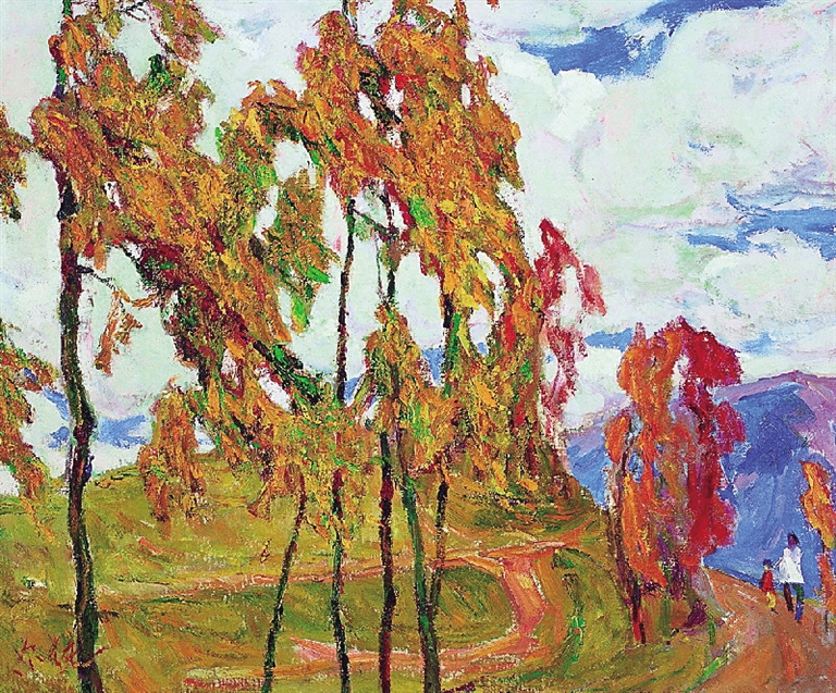 我们时时能感受到罗尔纯画面里感情的力量,这种力量就像当年凡高给我们的感觉一样。凡高革命性地使色彩变成线条,有强度有力度的线条。罗尔纯其实也是使色彩真正有了块面的质感,有了线条的硬度,而又来源于真诚的感情。更重要的是,一般中国人对印象派艺术的接受更多偏于像雷诺阿那种对早期光影的抒情,也就是所谓甜美,对后印象派那种强调力度的抒情没有合格的传人,而罗尔纯的抒情性是一种有质感有密度的抒情。正如凡高的伟大并不在于技术与色块的强烈冲击,而在于他对神学与哲学的理解内涵,塞尚对物质结构的强调也是基于神学支撑,从而这种抒情本质上是苦涩的,比早期印象派对大自然万物的书写有着更深刻的理解。罗尔纯画面中树的三角形、锥形,树像石头一般的造型以及道路的扭曲与直线的确立,等等这些都摆脱了江南那种吴侬软语式的抒情,获得了画面的深度与力度。