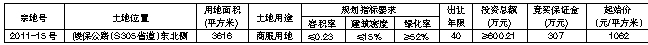 经陵水黎族自治县人民政府批准,陵水黎族自治县国土环境资源局决定以挂牌方式出让2011-15号宗地项目的国有建设用地土地使用权。现将有关事项公告如下:一、挂牌出让地块的基本情况和规划指标要求