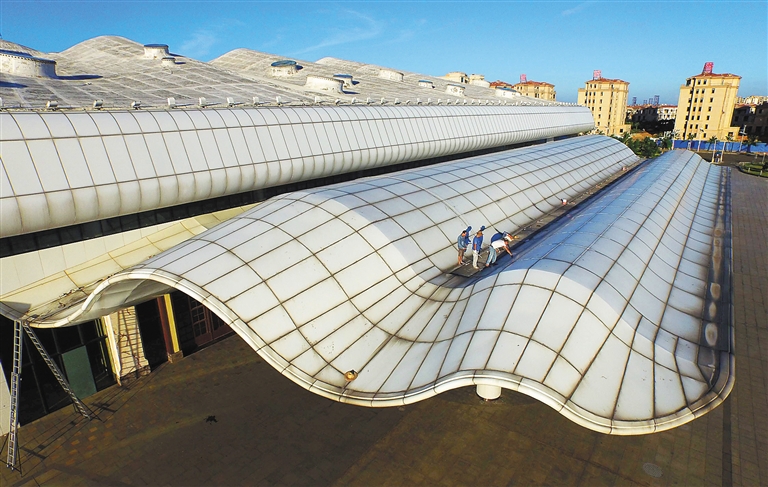 11月10日,在海南省国际会展中心,工作人员正在维修展厅设施,为即将到来的大会展做准备。据了解,中国国际创意设计推广周正式落户海南,使海南会展业增添了一大定期定址举办的会展活动,其中2015年第六届中国国际创意设计推广周将于11月18日至20日在海口举行。本报记者 陈元才 摄