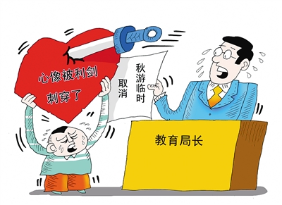 得知秋游被取消,小学生豆豆立即给教育局长写了一封信,直言如“晴天霹雳”,“像一把利剑刺穿了我的心”,其才情和胆气着实让人称赞,但其背后反映的教育问题更让人深思。据了解,该学校之所以作出取消秋游的决定,主要由于个别学生在之前的秋游中受伤。学生受伤反映出学校秋游组织不力、安全保障不足,对此,学校非但不反躬自省,反倒一刀切取消秋游,如此做法,未免因噎废食、太过任性,难逃推卸责任之嫌。事实上,诸如秋游、教学等教育活动,关系到孩子的健康成长,学校和老师都不能有半点闪失,都必须切实肩起教育职责,设身处地为学生着想,增长学生见识,确保学生安全。这正是: