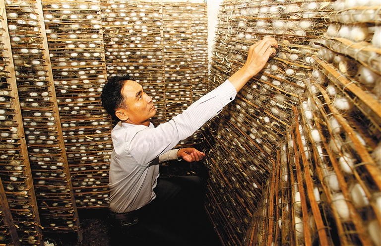 “现在这是第12批,前11批的收入有3万多元。”近日,陈业开拿着蚕茧到收购站售卖。他说,今年他家的蚕茧在15元/斤以上,今年虽然干旱,但是估计全年的桑蚕收入约4万元。
