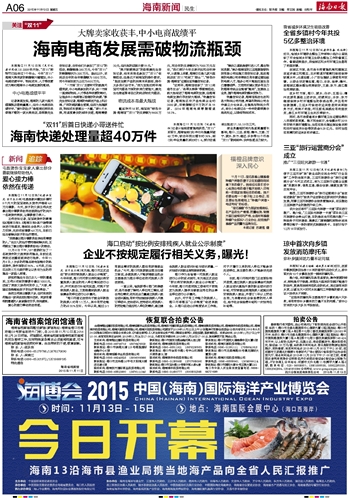 海南日报 海南新闻民生 006 2015-11-131 2015年11月13日 星期五