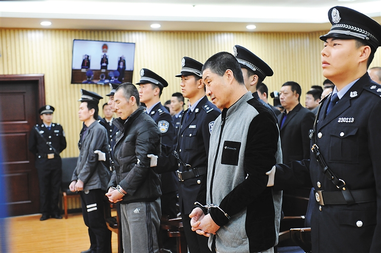 ➡ 被告人高玉伦、王大民、李海伟在宣判现场。新华社发