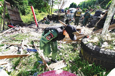 11月13日,在泰国南部北大年府鹄坡地区,军方人员在爆炸现场查看。 泰国警方当日表示,一枚被隐藏在北大年府鹄坡地区的炸弹爆炸,导致4人死亡,4人受伤。2004年以来,泰国南部北大年府、也拉府、那拉提瓦府等地分离主义组织活动频繁。 新华社/路透