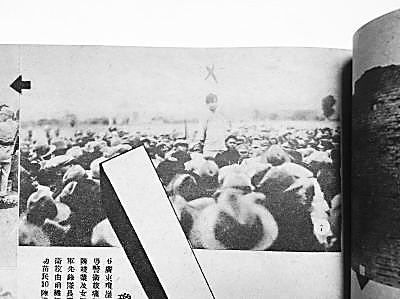 其中一幅照片的说明为“红军女子模范军先锋队队长庞琼花就擒后对海口民众演说状”。照片中,庞琼花穿浅色上服,短头发,双手被绑在背后,神态镇静。
