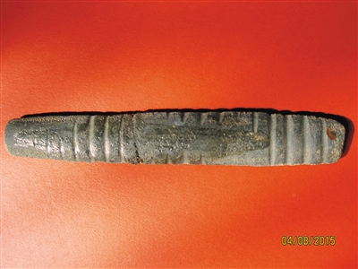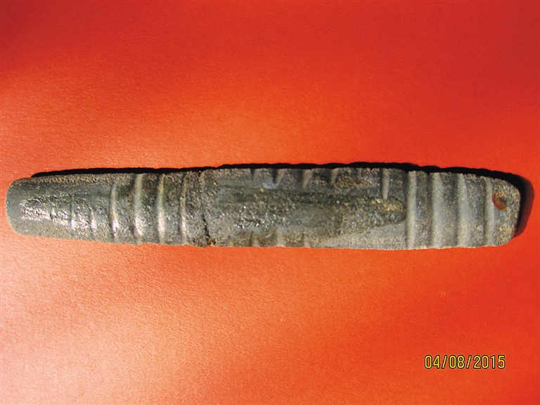 当地江边乡村民麦秀梅告诉笔者,听她父母辈那一代人回忆,纺织记忆棒不但是踞腰织机的重要构件,还是他们的定情物,在当地旧时有一种恋爱习俗:男女青年到了谈婚论嫁阶段,男方要亲自到山上选一条适合雕刻的木料,然后加工成踞腰织机的构件,并亲自在木料上精心雕刻黎锦图案,完成了所有工序后,男子就先保存着记忆棒,要是看上了村中那一位女子,他就亲自赠送记忆棒,而受赠女子往往根据记忆棒图案的精美程度来决定是否应该接受求婚男子的“丘比特之箭”,工艺精湛的记忆棒,意味着求婚男子是个有手艺、有责任心的人,是可以托付终身的对象。因为记忆棒在黎族女子婚后进入了“男耕女织”生活中后,妇女在日常手工纺织时,记忆棒是织绣黎锦图案的指导依据,并伴随一生甚至世代相传。在三亚市崖城地区,有一位黎族妇女保存的一件自称是母亲传给其作为嫁妆的记忆棒,上面除了传统图案之外,还在木棒两头雕刻古代铜钱的图案,这位老妇人告诉我,这是她父亲当年求爱时送给母亲的礼物,精心雕刻圆形铜钱图案,寄意日后的生活圆圆满满、幸福美好。