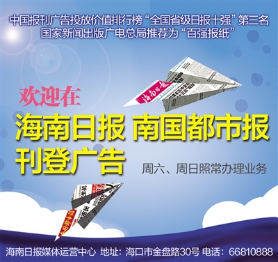 欢迎在海南日报 南国都市报刊登广告