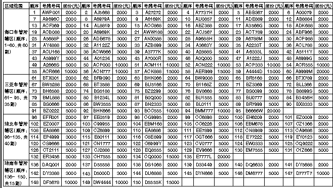 一、发放标的:琼A9999M等150个小汽车号牌,详细号牌及其竞价底价见附表。