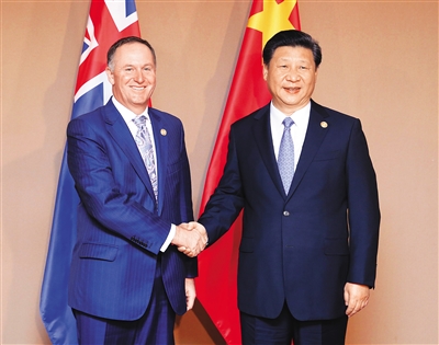 习近平指出,当前中新关系发展势头良好,两国经贸、人文、司法执法、防务等领域交流合作稳步推进。深化中新合作符合两国共同利益,有利于亚太地区稳定和繁荣。中方愿同新方加强对话、交流、合作,推动两国全面战略伙伴关系不断取得新成果。中新要保持高层及各级别密切交往,发挥各领域机制性对话的作用;要推动双边贸易扩容升级,扩大农牧业等传统领域合作,同时寻找食品安全、节能环保、信息技术、生物医药、基础设施等新合作增长点;拓展文化、体育、地方等人文交流;密切司法执法和防务合作。中方愿加强同新方在联合国、亚太经合组织、东亚峰会、太平洋岛国论坛等多边机制及气候变化、区域经济一体化等问题上的沟通和协调,共同促进地区稳定和发展。双方应该加强南极事务合作。