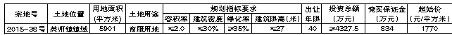 经陵水黎族自治县人民政府批准,陵水黎族自治县国土环境资源局决定以挂牌方式出让2015-38号宗地项目的国有建设用地土地使用权。现将有关事项公告如下:一、挂牌出让地块的基本情况和规划指标要求