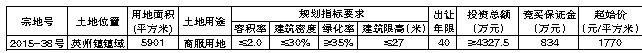 经陵水黎族自治县人民政府批准,陵水黎族自治县国土环境资源局决定以挂牌方式出让2015-38号宗地项目的国有建设用地土地使用权。现将有关事项公告如下:一、挂牌出让地块的基本情况和规划指标要求