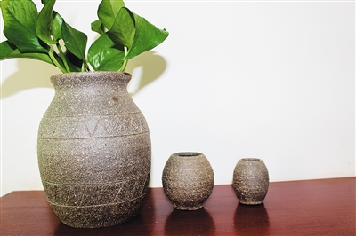 在芭蕉村委会的客房里,记者看到,墙壁上悬挂着编织精美的黎锦,桌子上摆放着制作考究的陶器。这些陶器各有用途,有的栽植着花草,充满了勃勃生机。村委会陈列室里,摆放着若干个竹器,有圆盘、圆筒形的,系着挂绳,可供挎在肩上盛装物品。李少荣说,这些陶器都是芭蕉村民前几年烧制的,黎锦也是他们自己编织的,尽管品种多样化,但上面都有“大力神”的图案。