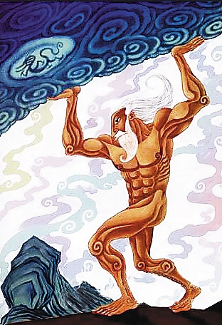 “盘古开天辟地”的故事告诉我们,世界生于无边的蛋黄般的混沌,盘古闷得受不了才用利斧分开蛋黄,清轻者上升为天,重浊者下沉为地。他又担心天地重新合拢,于是支撑天地,身躯也日渐长高,才奠定了今天宇宙的格局。