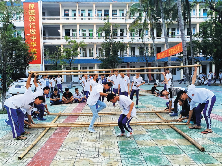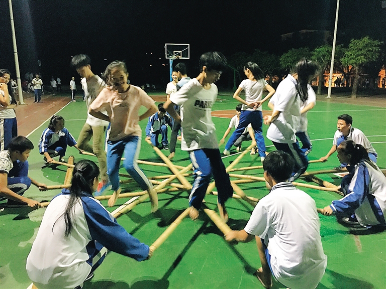 保亭中学校长周小华说,学校近日还将举行竹竿舞大赛,“我们还考虑给每个班配备若干体育器材,让学生更多的动起来。校园生活丰富有趣,学生更能安心学习。”