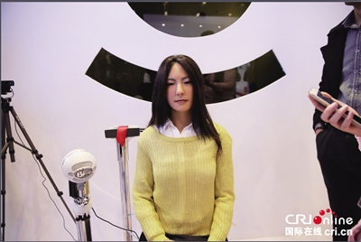 “好,我是日本石黑浩教授的情感机器人(眨眼睛)。”