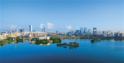 红城湖是海口内湖。多年以来,周边的大量生活、生产污水未经处理就直接排入湖中,造成湖边垃圾成堆,湖体污染严重。如今,琼山区启动“双创”活动后,湖边商铺签署了“门前三包”,昔日湖边烧烤摊没了,红城湖漂浮的垃圾得到了清理,湖景变得越来越靓。本报记者 张茂 摄
