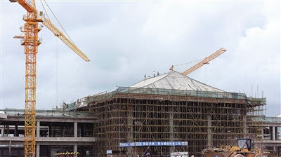 经过8个多月的紧张施工,博鳌机场已初见雏形。目前机场排洪沟、进场路征地拆迁工作完成70%,整个场地正在大规模浇灌水泥地面,航站楼已于近日封顶。机场预计将提前于2016年3月底实现试运行。