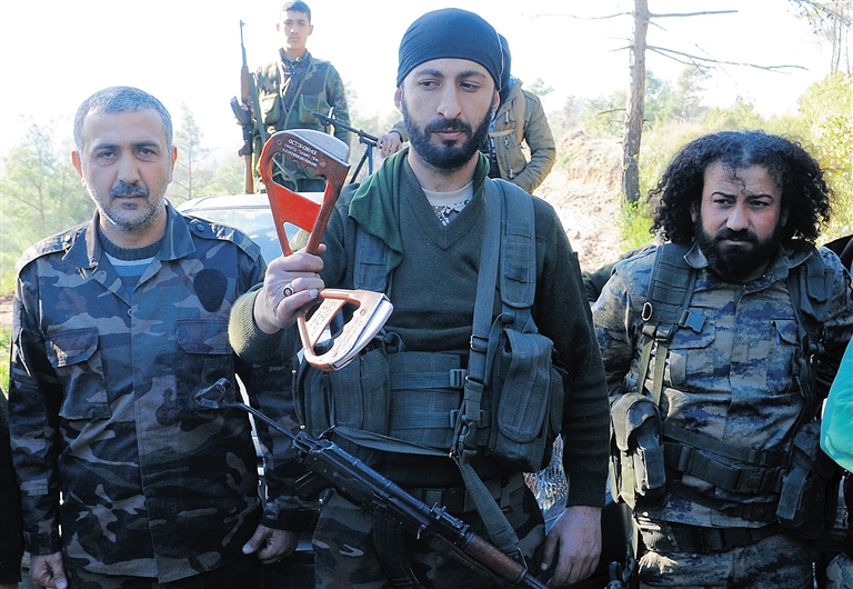 11月24日,在叙利亚靠近土耳其边境的一个村庄,一名叙利亚军官手持一对疑似为俄罗斯被击落战机飞行员的降落伞握柄。 俄国防部长绍伊古25日说,前一天被土耳其空军击落的俄战机上的一名飞行员已被成功营救,并被送往俄在叙境内的军事基地。 新华社/路透