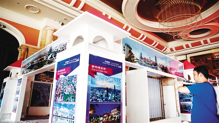 11月25日,在2015年(第十六届)海南国际旅游岛欢乐节开幕式主会场海南国际会展中心广场,开幕式及各项展会的展台正紧锣密鼓地搭建中,各项主题活动的准备工作已接近尾声。本报记者 张茂 摄
