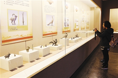 11月25日,参观者在参观展出文物。 当日,为期2个月的《纵横万里 跨越千年——丝绸之路的璀璨文明》展在西安半坡博物馆开展。展品包括汉、唐、辽不同历史时期的织品、佛教造像、玉器等各类文物共131件(组),展现了丝绸之路昔日的辉煌。