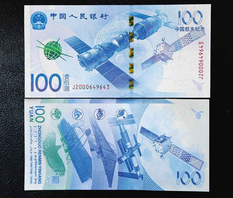 11月26日,中国人民银行发行中国航天普通纪念币一枚、中国航天纪念钞一张。中国航天普通纪念币面额10元、中国航天纪念钞面额100元,与同面额人民币等值流通。