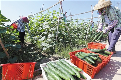 “今天的价格是2元/斤,卖了2万斤。”麦丽发说,如果按照这样的价格收摘下去,每亩青瓜利润在1万元以上,比种植传统青瓜至少增收30%-40%。