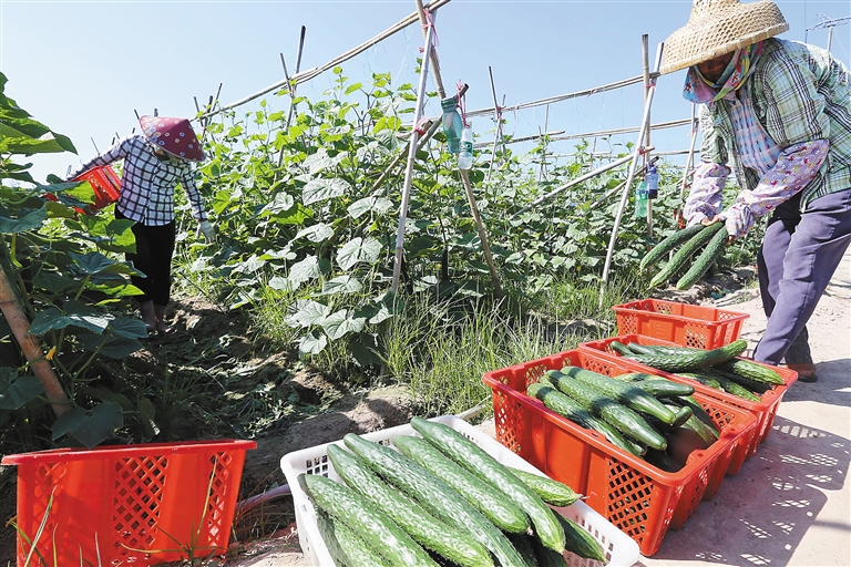 今天,在三亚市崖州区盐灶村,村民麦丽发看着70亩丰收的青瓜,喜笑颜开。“产量每亩达1.2万斤,比以往要高出20%,上市时间也提前了十多天。”麦丽发说,“最高兴的是我们家的青瓜品相好,受市场欢迎,价格比其他的要高出0.1元/斤-0.2元/斤。”