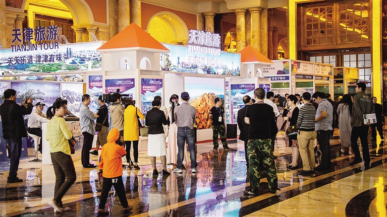 11月27日,海口市西海岸国际会展中心。2015年(第十六届)海南国际旅游岛欢乐节海口主会场,2015海南国际海洋旅游博览会天津馆人潮涌动。来自国内外的参展机构带来了海洋观光、海岛度假、潜海旅游等丰富多彩的海洋旅游项目,展示了当下世界上最前沿的海洋旅游业态。本报记者 李幸璜 摄 (更多欢乐节报道见A03版)