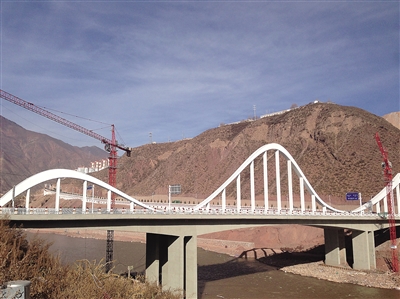 这是建成后的澜沧江天津大桥。 11月26日,由天津市援建的澜沧江天津大桥建成通车,成为打通澜沧江天堑的“通途”。大桥位于海拔3200米的西藏昌都市卡若区生格村,项目总投资约8000万元,于2014年初开工建设。大桥横跨澜沧江上游,总长度为173.5米,总宽度23米,为三跨连续薄壁箱梁结构,桥面设计为双幅双向四车道。