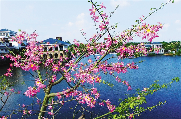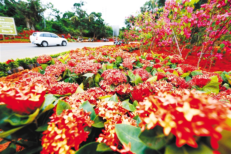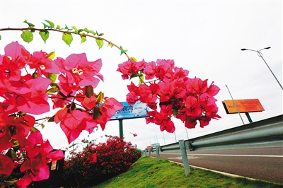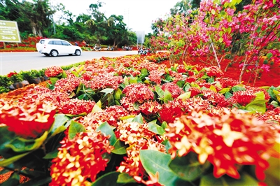 11月26日,海口街头的各种鲜花争相怒放。时下,北方处于冰天雪地的时候,海口的街头却处处鸟语花香,吸引了众多游客前来“猫冬”。