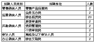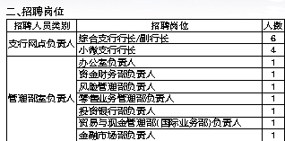 岗位要求:(1)30周岁(含)以下;具有1年以上银行柜面工作经历;(2)熟练掌握银行柜面业务操作技能;具有较强的服务意识和合规意识。