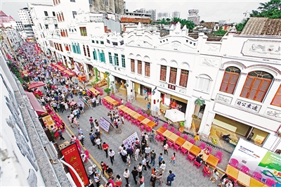 这边,一群群身穿汉服的年轻男女一出台,古典的装扮立即吸引了许多前来看热闹的游客和市民。“这还是我们第一次直观感受传统文化的魅力,经过工作人员讲解,我们才对汉代文化有了更深入的了解。”海口市民吴翔和妻子一边向孩子介绍汉代文化,一边上前和表演者合影。吴翔说,带孩子来参加活动,也是让孩子更近距离地接触和加深对我国传统文化以及海南特色文化的了解。