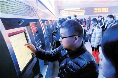11月28日,一名旅客在山东济南火车站自助售票大厅查看春运火车票。 当日起,2016年春运火车票在车站窗口、代售点、自动售票机等渠道预售,预售期为58天。 新华社记者 周科 摄