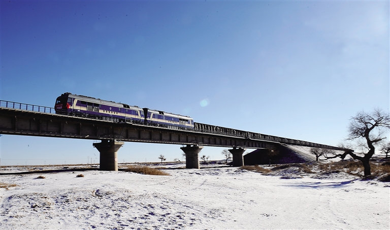 12月1日,一列满载货物的列车从内蒙古额济纳旗驶向新疆哈密。 当日,内蒙古自治区额济纳旗至新疆维吾尔自治区哈密市铁路正式开通运营,该铁路东起额济纳站,向西经甘肃省,终至哈密东站,线路全长644公里。它的建成运营,将进一步完善我国西部铁路网结构,形成贯通东西、连接天津港与阿拉山口2个口岸的铁路通道。临(河)哈(密)铁路贯通后,新疆至华北的铁路运输距离,较通过兰新、包兰铁路运行缩短约760公里,可大幅节约运输成本,提高运输效率。新华社记者 任军川 摄