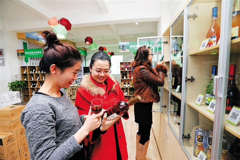 12月1日,在大连“壹优雅”全媒体体验店内,顾客在了解酒类商品。 当日,“壹优雅”全媒体体验店平台落户辽宁省大连市金普新区跨境电商综合实验区。据了解,该平台是将电子商务、文化产业与传媒广告整合为一体的多功能跨境电商平台,涵盖广告传媒、健康生活、金融理财、艺术品投资、社会公益等二十多个版块。目前,该平台处于试运行阶段,各功能板块正逐步完善。 新华社发