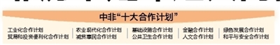 习近平表示,为推进中非全面战略合作伙伴关系建设,中方愿在未来3年同非方重点实施“十大合作计划”,即中非工业化合作计划、农业现代化合作计划、基础设施合作计划、金融合作计划、绿色发展合作计划、贸易和投资便利化合作计划、减贫惠民合作计划、公共卫生合作计划、人文合作计划、和平与安全合作计划,着力支持非洲加快工业化和农业现代化进程,实现自主可持续发展。