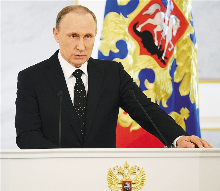 当天讲话伊始,普京首先向正参与打击叙利亚境内极端组织“伊斯兰国”目标的俄罗斯官兵表示感谢,称赞俄军展现出良好的战备状态和作战能力,在行动中积累了今后可致用的宝贵作战经验。