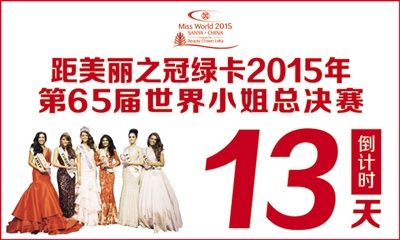 距美丽之冠绿卡2015年第65届世界小姐总决赛倒计时13天