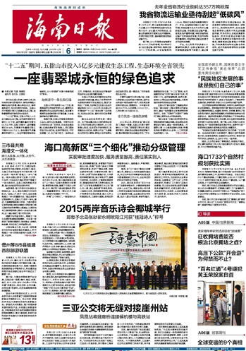 海南日报 头版 001 2015-12-061 2015年12月06日 星期日