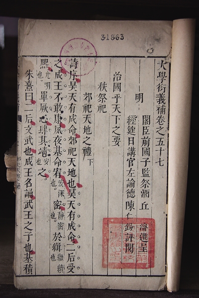 美国普林斯顿大学收藏的《精刻大学衍义摘粹》,是明代隆庆元年(1567年)的刻本。
