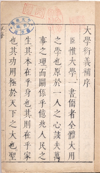 海师大图书馆内收藏的《大学衍义补》并不是完整的,只有一百六十卷的首一卷,最完整的版本在海南大学图书馆。