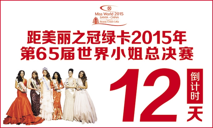距美丽之冠绿卡2015年第65届世界小姐总决赛倒计时12天