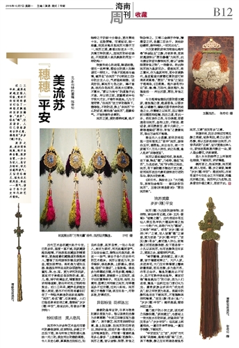 概而言之,殆至民国,流苏美意,深入世间。穗、岁之谐音,喻意“岁岁(穗)平安”!趋吉利和,亦将有益于今日社会之方方面面,而毫无扞格之抵。流苏所以为名物,且具普世价值之意义,即在于此。