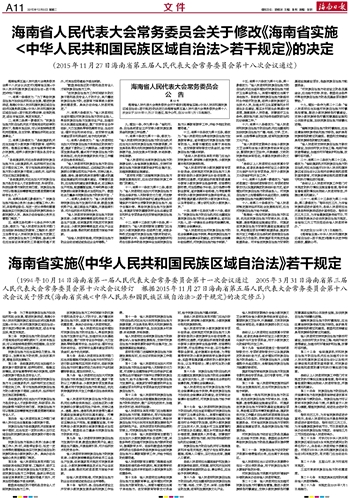 海南省人民代表大会常务委员会关于修改《海南省实施<中华人民共和国民族区域自治法>若干规定》的决定