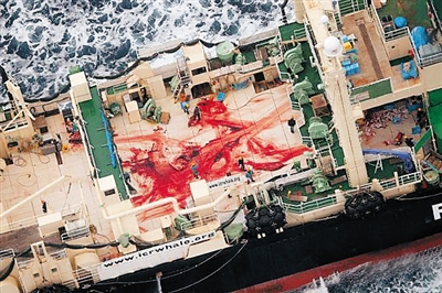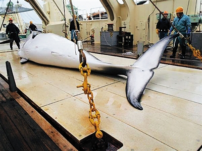 这名日本官员所说的“依据”,包括国际捕鲸委员会1986年通过的《全球禁止捕鲸公约》。这一公约禁止商业捕鲸,允许科研捕鲸。近30年来,日本正是以“科研”名义继续南极捕鲸,捕杀对象包括南极小须鲸、长须鲸和座头鲸等,每年捕杀数百头。